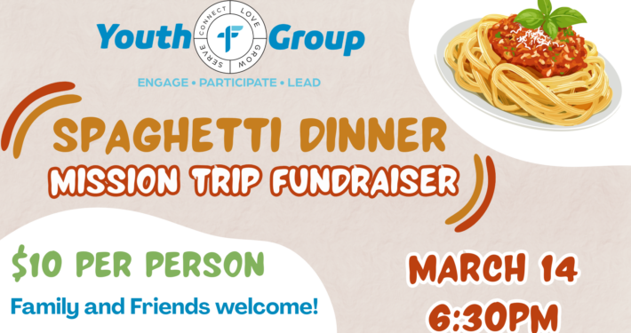 Join us on Saturday, March 14th at 6:30 PM for our annual Youth Spaghetti Dinner Fundraiser!